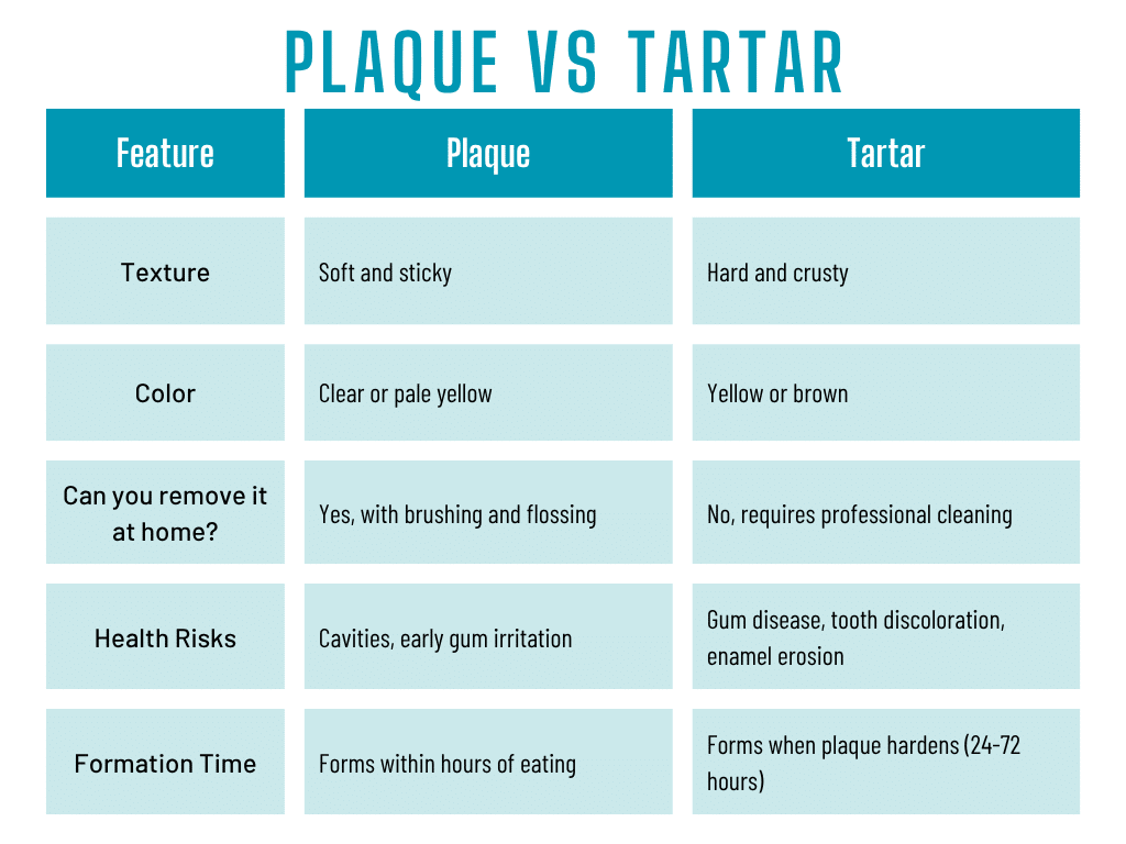 Plaque is soft and temporary—you can control it with good oral hygiene. Tartar, on the other hand, is stubborn and permanent until professionally cleaned. The longer tartar stays on your teeth, the more damage it can cause.